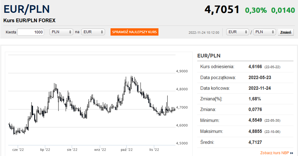 Stabilizacja euro-złotego wokół poziomu 4,70 zł jest obecnie bazowym scenariuszem krajowych analityków. Złotemu sprzyja rosnący globalnie apetyt na ryzykowne aktywa oraz otrzeźwienie fiskalne polskiego rządu, który od kilku tygodni mówi o cofnięciu obniżek VAT-u oraz ograniczeniu skali przyszłorocznych wydatków względem pierwotnych obietnic. Przeciwko aprecjacji złotego przemawia jednak prawdopodobne zakończenie cyklu podwyżek stóp procentowych w NBP.