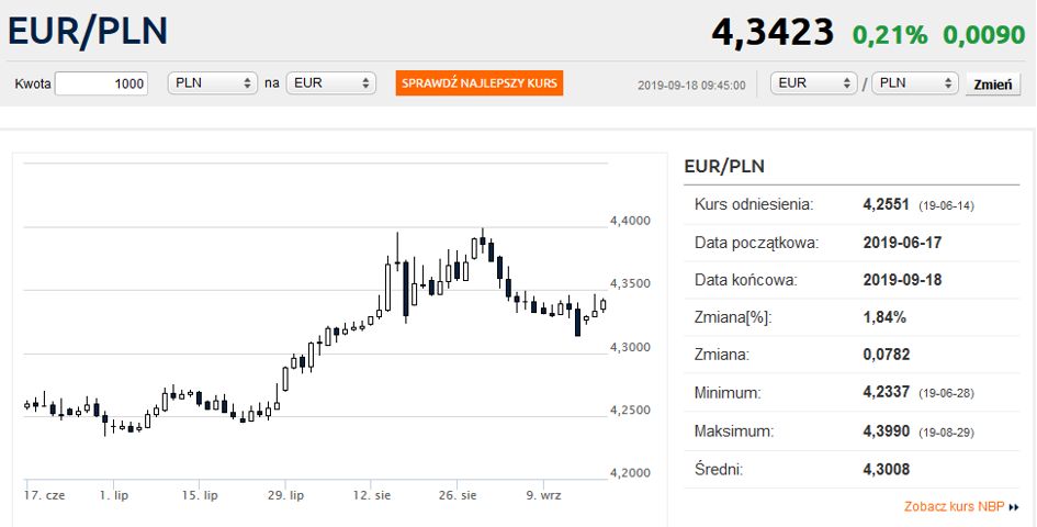 W środę o 9:45 kurs euro po nocnych zawirowaniach (na skrajnie niepłynnym rynku) ukształtował się na poziomie 4,3111 zł. To już o trzy grosze wyżej niż w piątek, gdy kurs EUR/PLN osiągnął miesięczne minimum, odreagowując sierpniowy wystrzał.