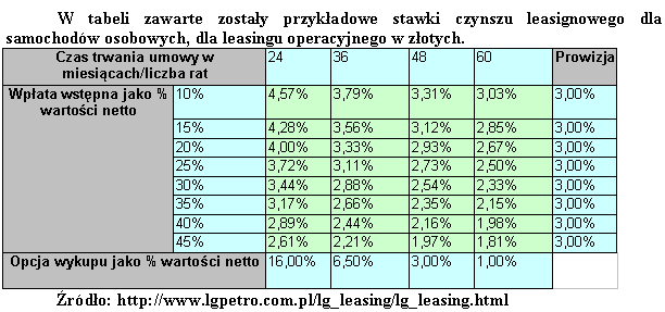 Rozpoznanie oferty i analizy potencjalnych leasingodawców możemy dokonać wstępnie na stronach internetowych. W obecnej sytuacji możemy już nawet zamówić ofertę niektórych towarzystw leasingowych za pośrednictwem Internetu. Na stronach portali internetowych (np. www.Bankier.pl) można znaleźć zestawienia firm leasingowych, kalkulatory pozwalające na kalkulacje korzyści podatkowych lub kosztu leasingu. W wyszukiwarkach portali finansowych można sprawdzić wysokość sumy opłat wybranych ofert oraz porównać z alternatywą w postaci kredytu bankowego.