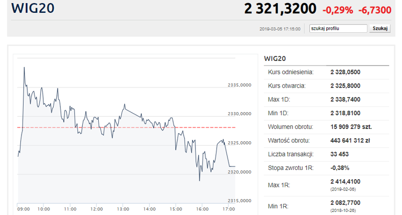 | WIG 20 | Polska | 2321,32 | -0,29 | -1,89 | -3,65 | -0,38 | 1,96 |