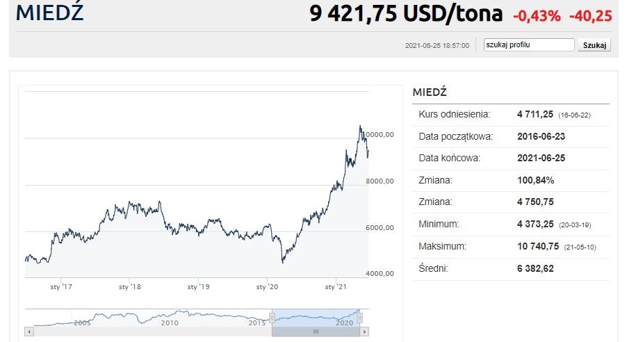 Co istotne ciężko stwierdzić, by od listopada 2019 roku Ministerstwo Aktywów Państwowych jakoś cudownie odmieniło cokolwiek w spółce. Prezes Chludziński rządzi spółką od czerwca 2018 roku i został powołany jeszcze w innej konstelacji ministerialnej. KGHM nie poczynił w ostatnim czasie spektakularnych przejęć i można powiedzieć, że rozwijał się swoim naturalnym trybem. Skąd więc tak spektakularna hossa? Kluczem do odmiany sytuacji w KGHM-ie była hossa na rynku surowców. Miedź, główny produkt kombinatu, w listopadzie 2019 roku kosztowała 5,8 tys. dolarów za tonę. Dziś jest to 9,4 tys. dolarów, a momentami było nawet i ponad 10 tys. Gwałtownie zdrożało także srebro. To wywindowało kurs oraz zyski KGHM-u. Jacek Sasin wypina pierś po medal, który mu się nie należy (chyba że globalna hossa na surowcach to jego zasługa...). Przypomnijmy bowiem - bez wzrostów KGHM-u napędzanych surowcową hossą w zasadzie nie byłoby się czym chwalić w kwestii sumarycznego wzrostu wartości spółek