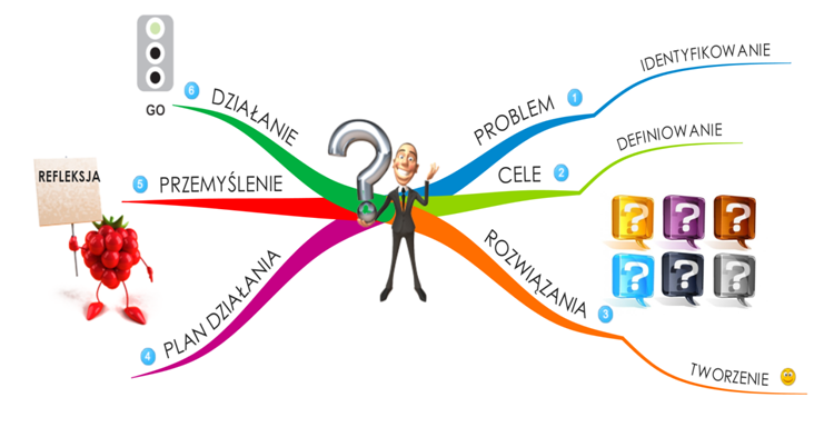 - Tworzenie rozwiązań, a więc pobudzanie naszej kreatywności i pomysłowości do tego, aby znaleźć jak najwięcej możliwych scenariuszy działania.