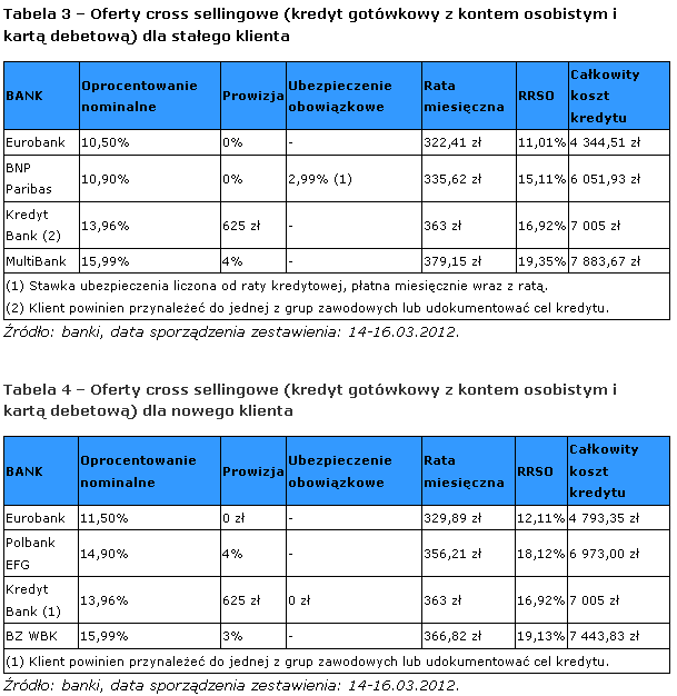 Tabela 2 - Oferty standardowe kredytu gotówkowego dla nowego klienta