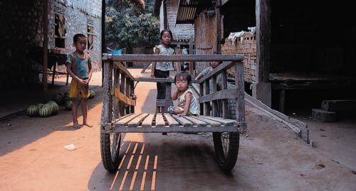 Przed nocą poszliśmy nad brzeg Mekongu. Zebrała się tam spora grupka miejscowych spacerowiczów. Usiedli z nami na brzegu, wszyscy bardzo skromnie ubrani, niektórzy wręcz w łachmanach, ludzie żyjący z dnia na dzień, bez perspektyw na bogactwo czy nawet emeryturę, na jakąkolwiek opiekę socjalną, rybacy, otwarci na przybyszów, pragnący, aby ci zachowali dobre wspomnienia ze spotkania z nimi. Po wielu próbach nawiązania rozmowy wszyscy zapatrzyliśmy się na czarną taflę płynącej wody, łodzie na nabrzeżu, niebo nad nami, i w naszych umysłach zapanował spokój. W tej wiosce spędziliśmy jedną noc, zerkając przez szpary w ścianie na rozgwieżdżone, bajeczne niebo.