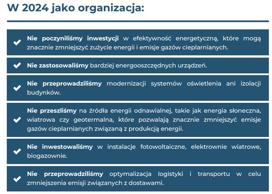 „(…) będziemy dalej wytrwale i z zaangażowaniem dążyć do oferowania naszym Klientom najlepszej jakości usług, bez względu na to ile przy tym zużyjemy plastiku, papieru, prądu, wody czy też jak wielki ślad węglowy po sobie pozostawimy.”