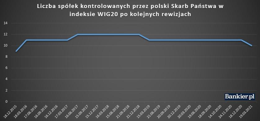 Co ciekawe, po raz ostatni 10 lub mniej spółek Skarbu Państwa w WIG20 obserwowaliśmy przed marcową rewizją 2016 roku, a więc w czasach gdy... Skarb Państwa przejmował kontrolę nad Aliorem. Wówczas państwowe nie było jeszcze Pekao. W indeksie nie było wtedy JSW i Lotosu, były za to Enea i wspominana już Energa.