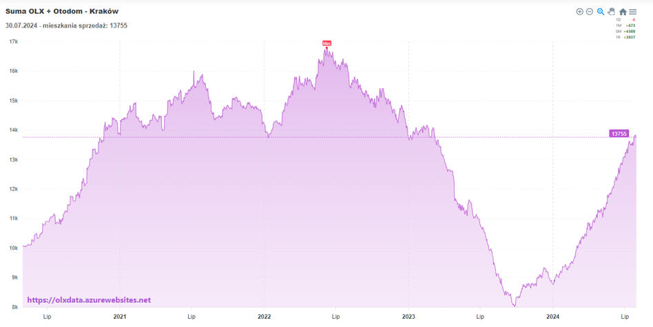 Od tego czasu byliśmy świadkami systematycznego wyprzedawania oferty. Stan ten trwał do końca września 2023 r., gdy w ofercie pozostawało ok. 8 tys. mieszkań.