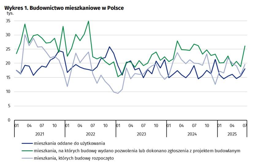 Zgodnie z szacunkami GUS-u, pod koniec lipca 2025 r. w budowie pozostawało 854,7 tys. lokali mieszkalnych – o 3,2 proc. a nominalnie o blisko 27,5 tys. więcej niż pod koniec lipca 2024 r.