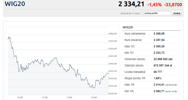 Ostatnia sesja kwietnia przebiegała na warszawskiej giełdzie pod znakiem mocnych spadków. Negatywnie wyróżnił się m.in. sektor bankowy, który tracił po fatalnych wynikach Idea Banku.
