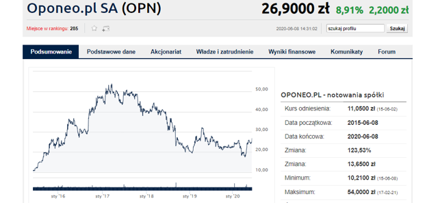 W sumie, licząc od początku 2020 roku, przychody spółki są wyższe o 8 proc. rok do roku. Pod koniec maja zarząd Oponeo informował, iż w związku ze wzrostem zakupów przez internet liczy na przekroczenie 1 mld zł przychodów i poprawę zysku netto w 2020 roku.