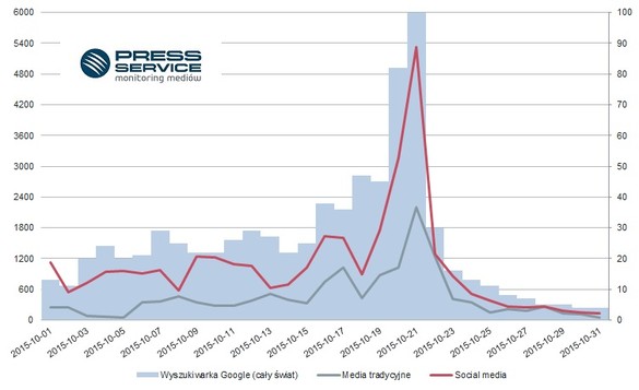 Z analizy trendów aktywności internautów w Google wynika, że zainteresowanie konkursem odpowiadało okresom największej aktywności mediów - szczyt uwagi przypadł na 21 października.