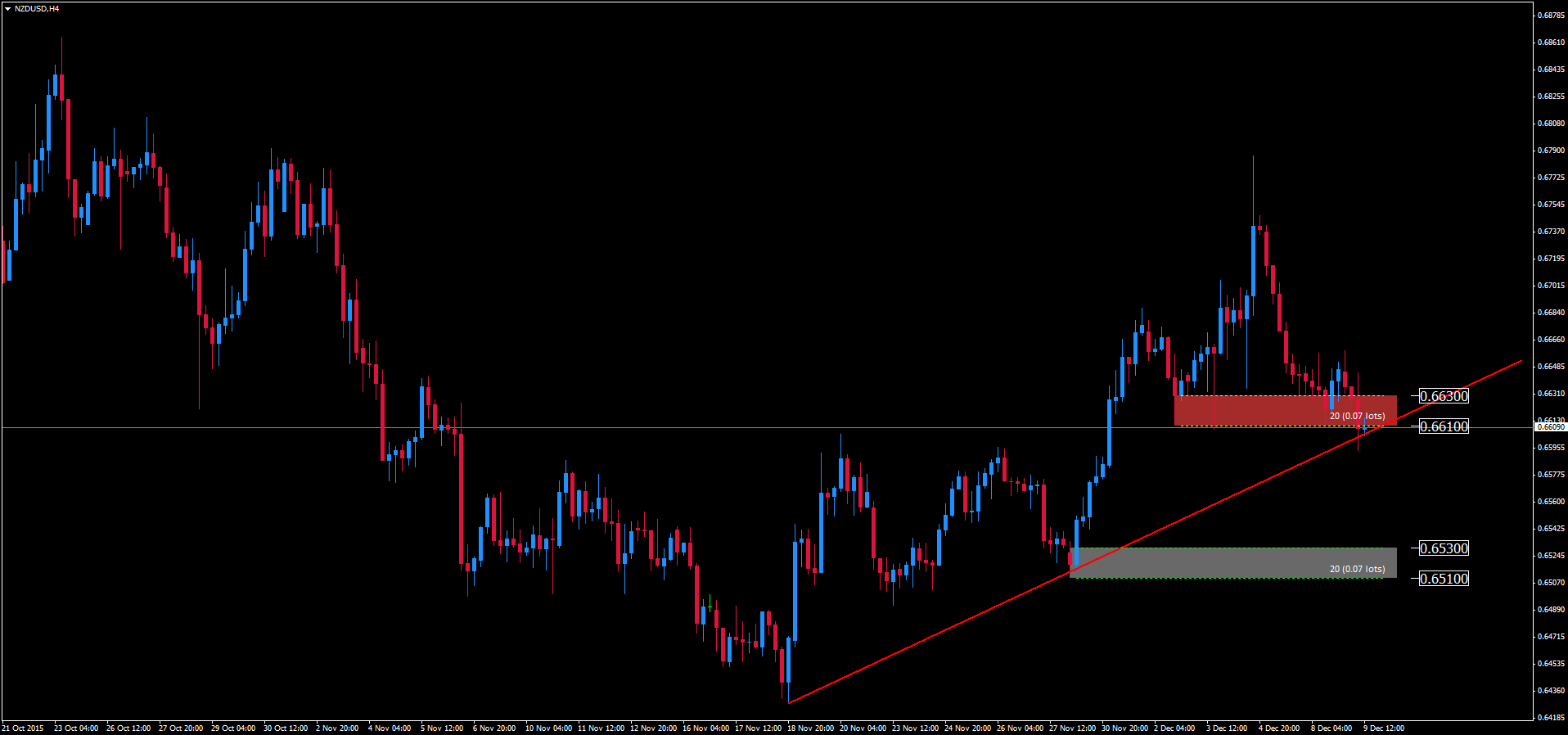 Obecnie kurs NZD/USD zatrzymał się na wsparciu 0,661-0,663 oraz na linii trendu wzrostowego. Bazowym scenariuszem pozostanie jednak dalsze osłabianie się dolara nowozelandzkiego względem dolara amerykańskiego. Przy powyższych oczekiwaniach dalszego luzowania polityki pieniężnej wsparcie to powinno zostać pokonane, następnym miejscem gdzie kurs NZD/USD może zmierzać jest kolejna strefa wsparcia w okolicy 0,651-0,653.