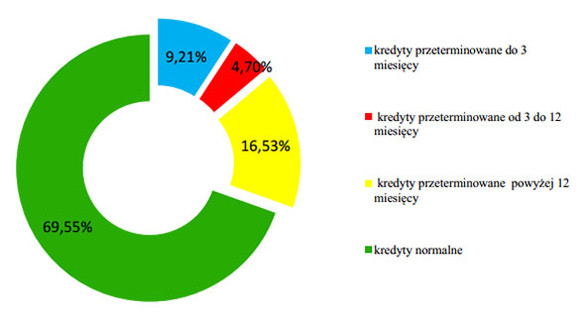 Za szczególnie niepokojące uznać należy dane dotyczące jakości portfela kredytowego SKOK-ów. Ponad 30% kredytów to zobowiązania przeterminowane, a 16% ogółu portfela ma opóźnienia w spłacie przekraczające rok.