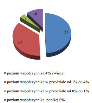 Ilość kas mieszczących się w poszczególnych przedziałach współczynnika wypłacalności