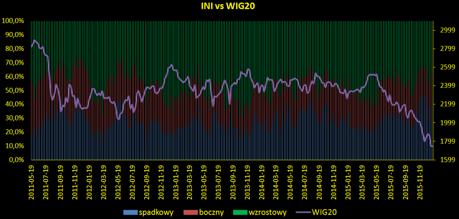 Tak duży odsetek niedźwiedzi może być ciekawą wskazówką dla inwestorów - skrajne wartości często poprzedzają bowiem odwrócenie trendu na giełdzie. INI należy czytać jako wskaźnik kontrarny tzn. duża ilość byków sugeruje możliwe spadki i na odwrót. Choć dane są zbierane od niecałych czterech lat, to badanie zdążyło już kilkukrotnie potwierdzić swoją przydatność. Warto jednak pamiętać, że kontrarne wnioski płynące z jego wyników nie mają 100% przełożenia na rynek.