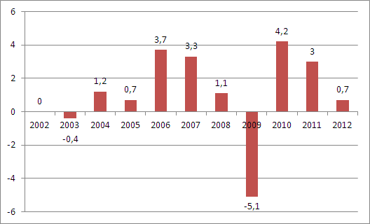Kondycja Niemiec uległa istotnemu pogorszeniu. W 2012 roku wzrost produktu krajowego brutto zwolnił do 0,7 proc. rok do roku. W 2011 roku gospodarka rosła w tempie 3 proc. po korekcie, czyli mniej niż szacowane dotychczas 3,3 proc.
