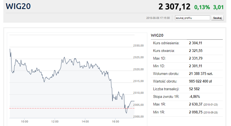 Polski indeks blue chipów przez większość dnia prezentował się zdecydowanie lepiej niż jego europejskie odpowiedniki. W końcówce sesji sił jednak zabrakło i w ostatnich minutach przed zamknięciem trwała nawet walka, by zakończyć sesję w ogóle na plusie. Ostatecznie się to udało i WIG20 zyskał 0,1 proc. Odrobinę lepiej, za sprawą mocnego mWIG-u (+1 proc.), wypadł WIG (+0,3 proc.).