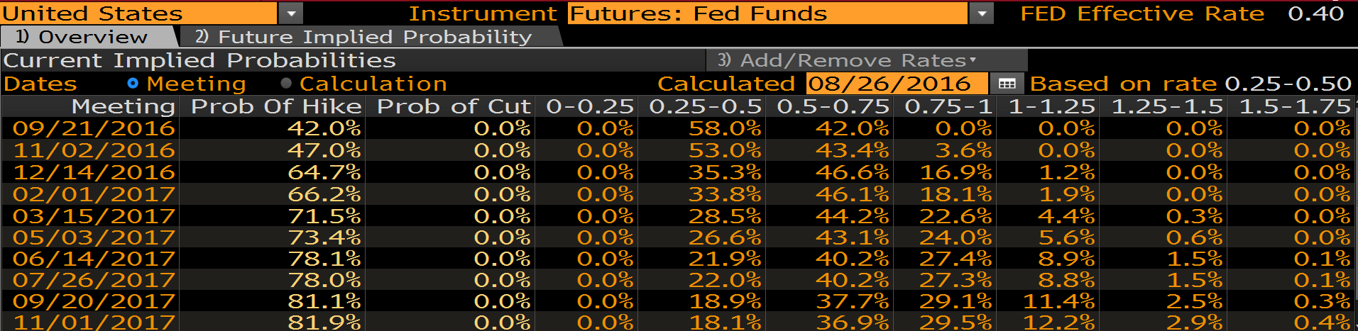 Rynek na podstawie kontraktów terminowych zaczął wyceniać większe prawdopodobieństwo podwyżki stóp procentowych na wrześniowym posiedzeniu, które powinno rosnąć razem z lepszymi danymi makroekonomicznymi z gospodarki amerykańskiej. Na wrześniowym posiedzeniu inwestorzy z 42% prawdopodobieństwem spodziewają się podwyżki kosztu pieniądza.