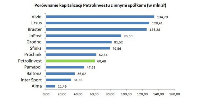 Oznacza to jednocześnie, że Petrolinvest jest obecnie według inwestorów wart więcej niż Pamapol czy Baltona. Mniej niż 100 mln zł warte są również m.in. takie spółki jak Sfinks czy jeszcze niedawno święcący triumfy InPost. Ledwie dwa razy większą kapitalizacją pochwalić się mogą Vivid, Ursus czy Braster.