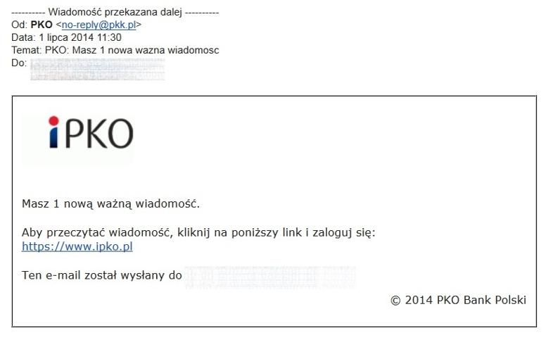 Atak phishingowy na klientów PKO BP