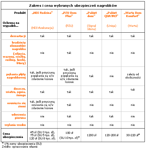 Wichury tak silne, że łamiące gałęzie drzew, przymarzający śnieg, lokalne podtopienia to realne ryzyka, z jakimi liczyć trzeba się po śmierci. Śmierci bliskiego, którego grobem się opiekujemy. Sposobem na spokojną głowę może być ubezpieczenie nagrobka. Oferuje ją coraz więcej towarzystw, najczęściej w ramach ubezpieczenia majątku (PZU, Signal Iduna, Warta) lub życia (HDI Asekuracja). W razie dewastacji przez chuliganów, kradzieży czy w sytuacji niszczycielskiego działania sił przyrody, należało się będzie odszkodowanie.