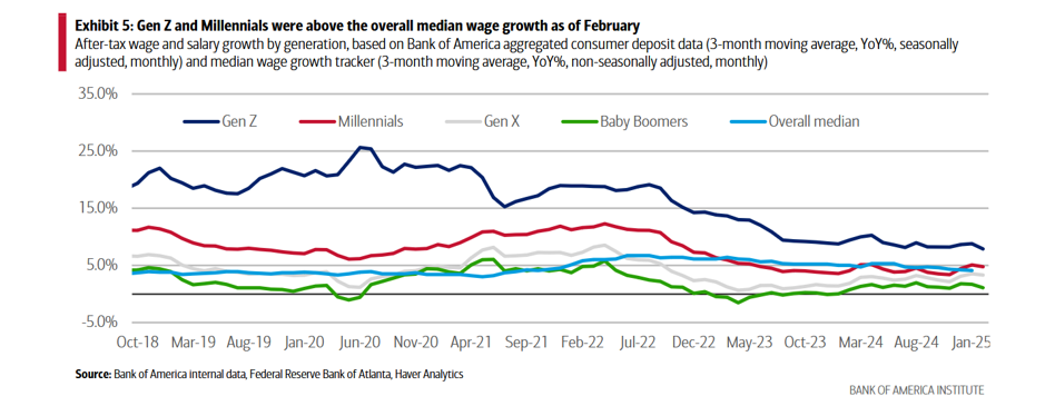 Bank of America, który przeprowadził analizę danych wewnętrznych kart debetowych i kredytowych, ujawnił, że przedstawicieli pokolenia Z cechuje o wiele większy wzrost wydatków na produkty niezbędne i ekskluzywne w porównaniu z pozostałymi generacjami.