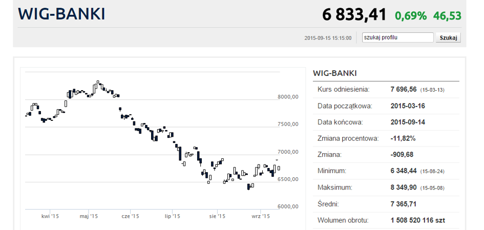 Innymi prywatnymi spółkami, których notowaniami trzęsą sprawy okołopolityczne, są banki. Emocje na rynku budziły w równej mierze podatki, jak i kwestia frankowców. W pierwszym przypadku giełdowe spadki napędzała opozycja (m.in, poprzez zapowiedzi Beaty Szydło dotyczące daniny sięgającej 0,39% aktywów). Potem banki jednak znacząco odbiły, gdy PiS w trakcie sesji poinformowało, że podatek pojawi się najwcześniej w 2017 roku.