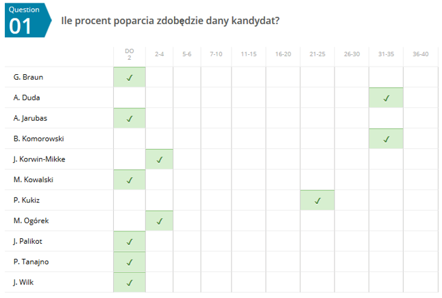 Oto „karta do głosowania” osoby, która trafnie wytypowała wynik wyborów (zaokrągliliśmy oficjalne wyniki podane przez PKW).