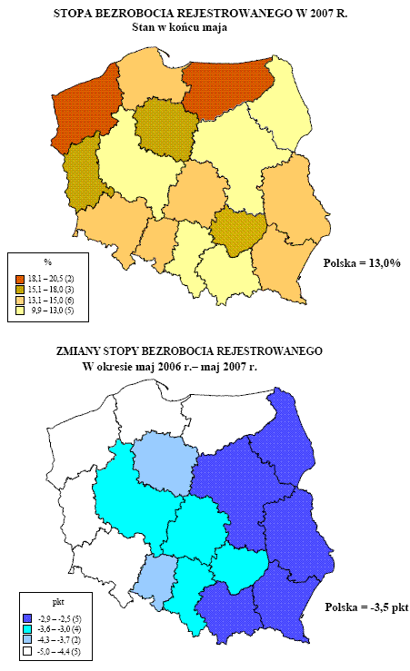 Tak dynamiczny wzrost gospodarczy powoduje, że w szybkim tempie spada również bezrobocie. Według danych GUS-u, liczba zarejestrowanych bezrobotnych w maju br. po raz pierwszy spadła poniżej 2 mln osób. Mimo wyraźnego spadku stopy bezrobocia – obecnie wynosi 13%, (o 3,5 pkt. mniej niż przed rokiem), nadal jest ono jednym z najwyższych wśród państw UE, gdzie średnia wynosi niewiele ponad 7%. W niektórych krajach europejskich procent aktywnej zawodowo ludności pozostającej bez zatrudnienia wynosi np. 3,5% (Dania i Holandia) czy 4% (Irlandia). Oficjalne dane dotyczące poziomu bezrobocia, niestety, znajdują swoje odzwierciedlenie w nastroju społeczeństwa. Co piąty Polak twierdzi, że bezrobocie dotyka jego najbliższej rodziny, 18% społeczeństwa ma bezrobotnego wśród członków swojej dalszej rodziny, a co trzeci z nas ma znajomego bezrobotnego. Powszechna styczność z bezrobociem, często tym długotrwałym, ma także wpływ na naszą ocenę sytuacji na rynku pracy.