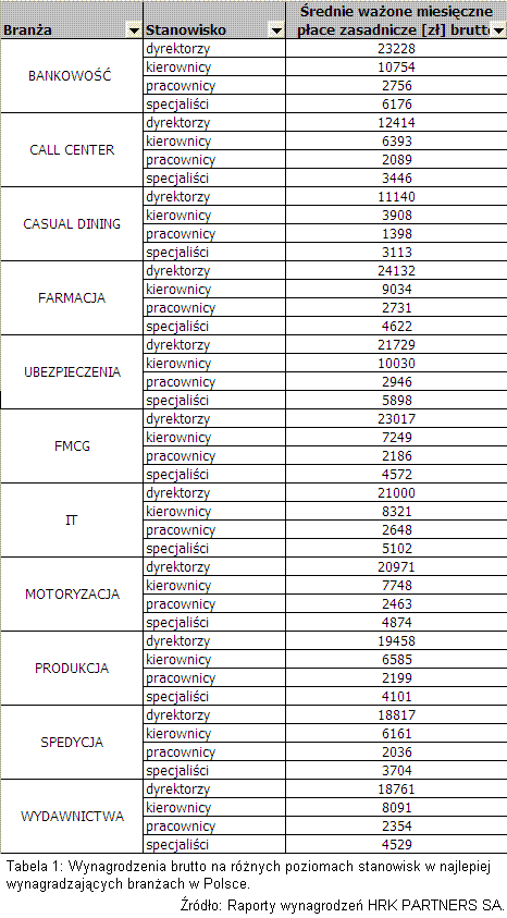 – W górę pną się przede wszystkim wynagrodzenia specjalistów i pracowników wykonawczych, płace menedżerów rosną nieco wolniej. Tradycyjnie najlepiej płaci branża finansowa, dokonała też ona w ubiegłym roku znaczącej korekty wynagrodzeń. Bardzo poszukiwani i cenieni są specjaliści od rynków kapitałowych, np. dealer w bankowości należy dziś do najlepiej opłacanych stanowisk w Polsce. – mówi Joanna Kotzian.