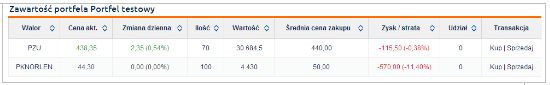 Zawartość portfela z podziałem na konkretne spółki