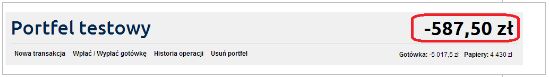 Żeby stworzyć swój pierwszy portfel wystarczy kliknąć przycisk „Dodaj portfel”, wybrać nazwę oraz opis. Następnym krokiem powinno być dodanie ilości gotówki, która będzie początkową wartością portfela – żeby to zrobić, należy kliknąć przycisk „wpłać / wypłać gotówkę” i umieścić w naszym portfelu odpowiednią kwotę Jeżeli chcemy potraktować portfel jako test naszych umiejętności na GPW sugerowana ilość gotówki na początek to 10 000 zł.