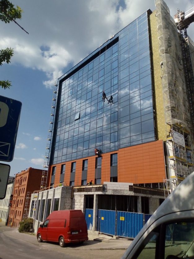 Ostatnio mieliśmy okazję prezentować wizualizację wnętrz, nowego hotelu sieci Focus przy ulicy Bernardyńskiej w Bydgoszczy. Dziś prezentujemy postępy prac związane z zewnętrzną stroną bryły starego biurowca Projprzem Makrum.