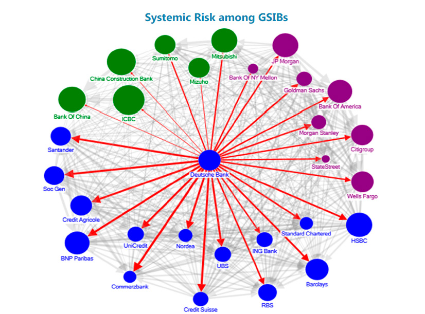 Niekoniecznie, ponieważ należy do grupy Too Big to Fail, czyli nikt nie może pozwolić na jego upadek. Powyżej została przedstawione powiązana poszczególnych banków z niemieckim gigantem. Jego upadek byłby katastrofą dla całego systemu finansowego.
