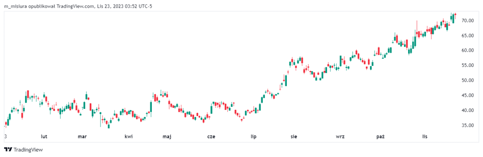 W efekcie po dramatycznym 2021 i trudnym 2022 roku, New Oriental Education & Technology zaczęło zwiększać zyski. Od początku roku akcje spółki zyskały ponad 105% i ich kurs na NASDAQ wynosi obecnie 71 dol.