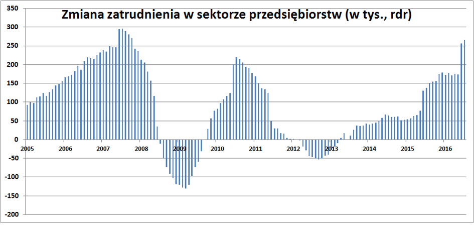 Z takiej sytuacji cieszą się przedsiębiorcy, zwłaszcza ci produkujący na eksport. Dla nich słaby złoty i niski nominalny wzrost wynagrodzeń przekładają się na czysty zysk. Nieco mniej pochlebne opinie o tej sytuacji zapewne mają pracownicy. Efekt jest taki, że zamiast gonić zachodnie pensje kolejny rok z rzędu był pod tym względem stracony: w latach 2008-16 godzinowy koszt pracy w Polsce zwiększył się zaledwie o jedno euro: z 7,6€ do 8,6€.