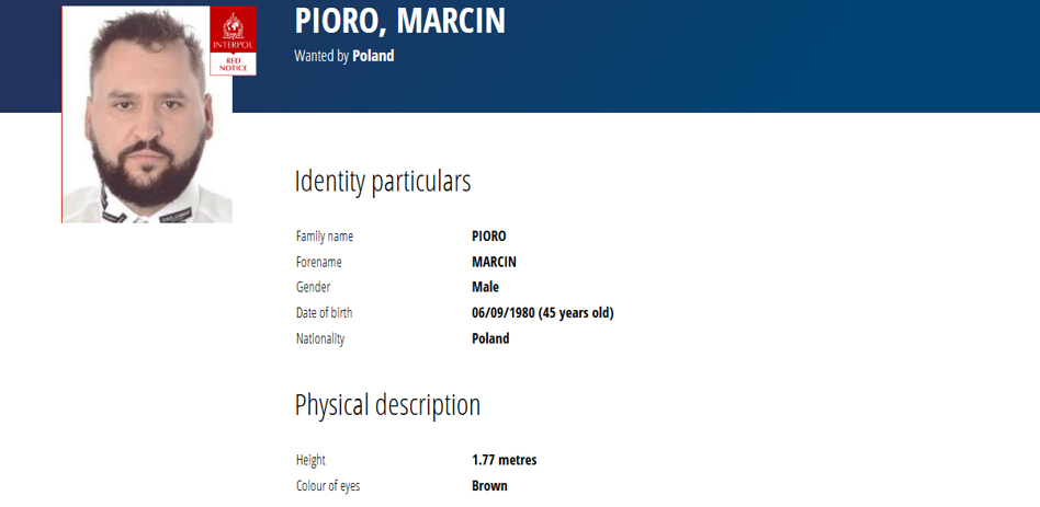 Prezes internetowego kantoru Cinkciarz.pl, Marcin Pióro został objęty czerwoną notą Interpolu, znajdując się w gronie najbardziej poszukiwanych osób na świecie. W sprawie upadku należących do niego spółek toczy się śledztwo prokuratury, w którym szkody klientów szacuje się w tej chwili na 125 mln złotych.