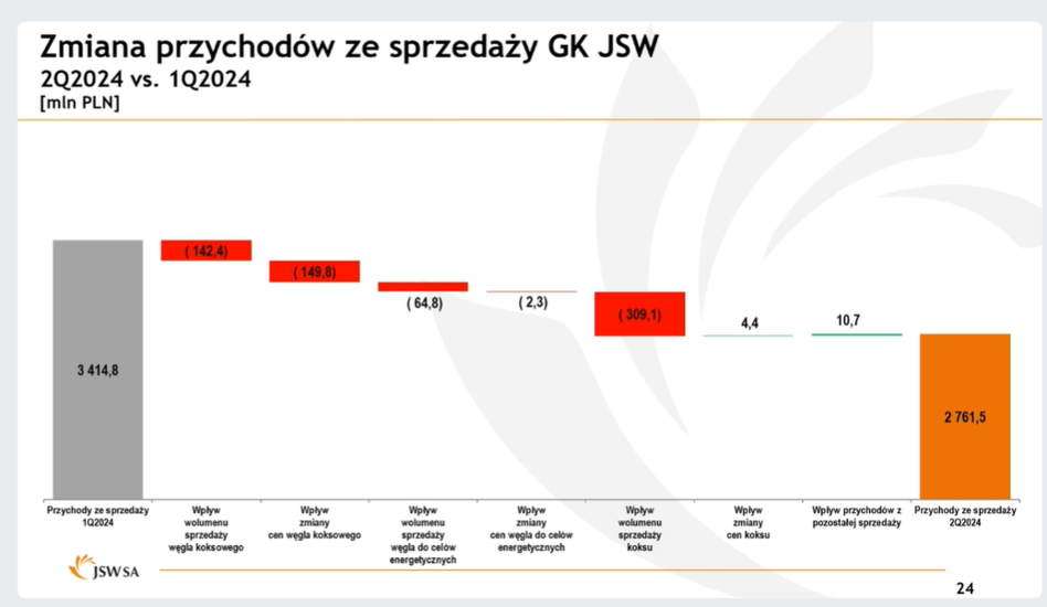 "Odnotowaliśmy spadek produkcji zarówno węgla jak i koksu, co przy spadku średnich cen węgla kokosowego o blisko 11% i utrzymaniu się cen koksu, przełożyło się na spadek przychodów do poziomu 2,76 miliarda w drugim kwartale" - przypomniał prezes Janta.