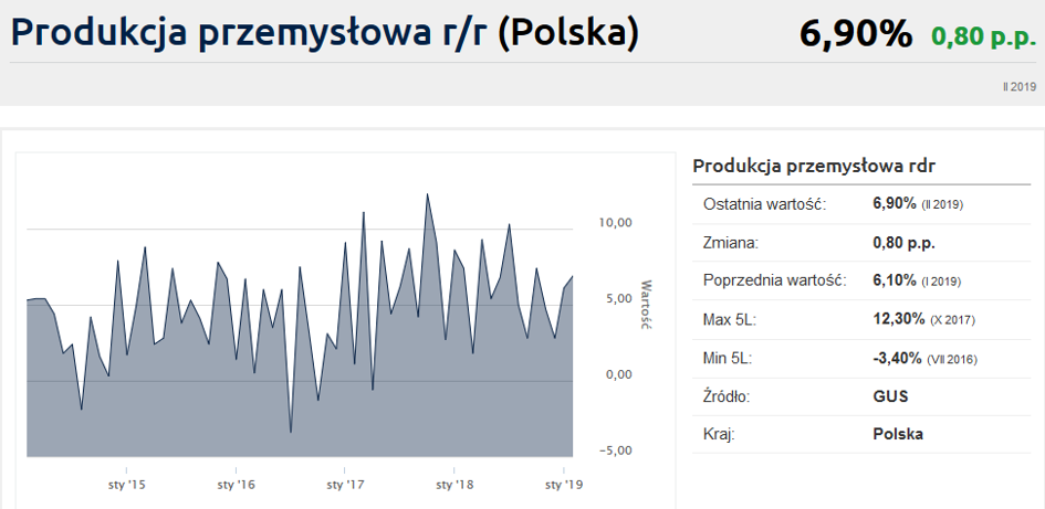 Co więcej, po raz pierwszy od lipca 2018 w górę poszła trzymiesięczna średnia krocząca rocznej dynamiki produkcji przemysłowej. Po lutym wynosi ona 5,3% wobec 4,5% po styczniu.