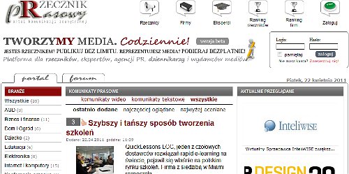 Z kolei projekt RzecznikPrasowy.pl to platforma dla dziennikarzy, wydawców i rzeczników prasowych. Aplikacja udostępnia rozwiązania pomocne w komunikacji z otoczeniem zewnętrznym. Ważną częścią witryny są funkcjonalności społecznościowe ułatwiającą zdobycie kontaktów branżowych.