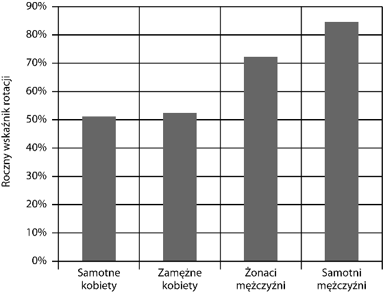 Rysunek 2.1. Roczny wskaźnik rotacji portfela ustalany ze względu na płeć i stan cywilny