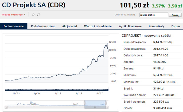 Pałeczkę po JSW przejął CD Projekt. To spółka, która również jest stałym bywalcem czołówki rankingu, po raz ostatni na szczycie znalazła się jednak w czerwcu 2015 roku, a więc w szczycie gorączki po zakończonej sukcesem premierze "Wiedźmina 3" (ta miała miejsce 19 maja 2015). Obecne wspięcie się na szczyt rankingu ma jednak konotacje raczej negatywne niż pozytywne. Negatywne opinie byłych pracowników, plotki dotyczące opóźnień "Cyberpunka" i słabsze od oczekiwań wyniki popsuły nieco świetną atmosferę wokół spółki. Zarząd CD Projektu próbował uspokajać inwestorów, jednak akcje zaczęły gwałtownie tanieć. 8 listopada producent "Wiedźmina" wyznaczał historyczne maksima na poziomie 128 zł, w środę 29 listopada za jedną akcję płacono już poniżej 100 zł.