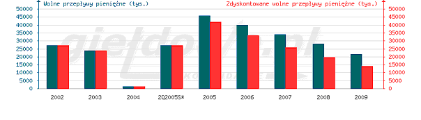Spółka Provimi-Rolimpex jest w okresie stabilizacji przychodów. Dotychczasowe wyniki finansowe wskazują na brak potencjału spółki w zakresie wzrostu przychodów (spółka Provimi-Rolimpex wyraźnie zwiększy swoje przychody w następnych okresach, ze względu na włączenie wyników finansowych spółki Provimi). W prognozach oczekujemy wzrostu marż operacyjnych netto z obecnego poziomu 2,40% do ponad 3%. Umożliwi to spółce zwiększenie w przyszłości generowanych wolnych przepływów gotówkowych. Wartość spółki jest generowana zarówno w okresie „do nieskończoności” - wartość rezydualna wynosi 233 mln zł, jak też w okresie szczegółowej prognozy (spółka generuje w tym okresie 132 mln zł wolnych przepływów pieniężnych). Taka struktura wartości wskazuje na średnie ryzyko wyceny, ponieważ dla całkowitej wartości Provimi-Rolimpex większe znaczenie mają odległe prognozy finansowe, ale znaczące są również przepływy generowane w okresie szczegółowej prognozy.