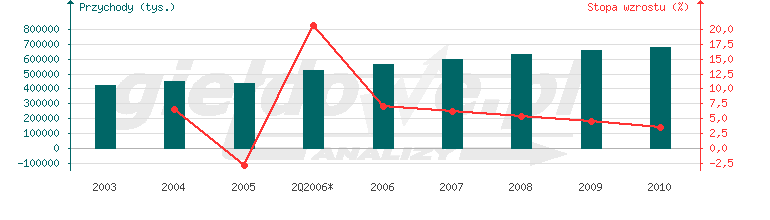 Akcje wyceniamy na poziomie 24,32 zł. Należy jednak pamiętać , że w naszej wycenie nie uwzględniamy wpływów z emisji, a co za tym idzie przyszłych inwestycji. Prognozujemy, że w 2006 roku przychody spółki wzrosną o 7%, a w okresie do nieskończoności będą rosły o 3,60% rocznie. Stabilna będzie także sytuacja na poziomie operacyjnym. W ostatnich czterech kwartałach marża zysku operacyjnego wyniosła 13,20%, a w okresie do nieskończoności prognozujemy, że wzrośnie do 12,30%.