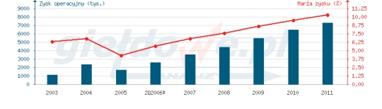 Akce spółki wyceniliśmy na 25,89 zł, czyli powyżej górnych widełek dla ceny emisyjnej. Nasza wycena nie uwzględnia ponadto przyszłych inwestycji, gdyż ich wpływ na sytuację spółki jest obecnie trudny do oszacowania. Prognozujemy stabilny wzrost przychodów w 2007 roku o 15,1% oraz o 4,1% w okresie do nieskończoności. Bardzo korzystnie wygląda również sytuacja na poziomie operacyjnym. Według nas spółka wykazywać będzie wzrostową tendencję w zakresie marży zysku operacyjnego. Obecnie wynosi ona 5,7%, w 2007 roku szacujemy jej wzrost do poziomu 6,8%, zaś w okresie do nieskończoności do 10,3%.