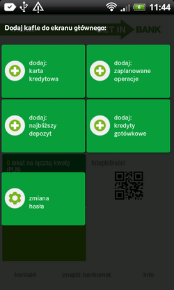 Aplikacja pozwala także zlokalizować najbliższe bankomaty banku, określając lokalizację użytkownika za pomocą GPS. Za pomocą aplikacji można połączyć się telefonicznie z infolinią lub wysłać e-mail z prośbą o kontakt. Program ma też zakładkę „Info”, ale jak do tej pory nie pojawiły się tam żadne informacje z banku.
