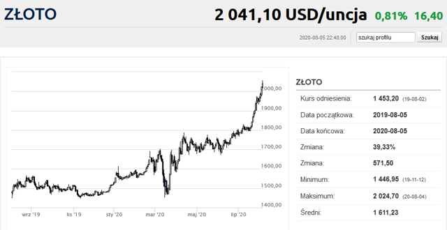 Ceny kontraktów na złoto przebiły 2000 dolarów za uncję. Królewski metal kontynuuje imponujący rajd, co przekłada się na zainteresowanie inwestorów.