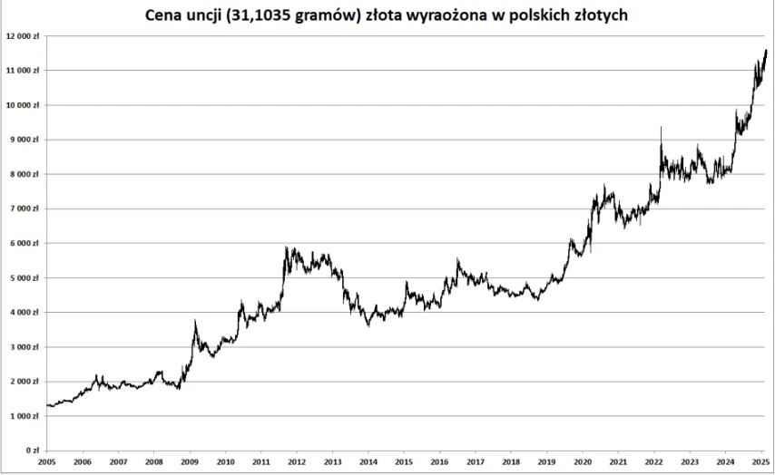 Na koniec dodajmy, że tegoroczne nominalne rekordy cena złota pobiła w większości głównych walut świata, takich jak dolar, euro, funt brytyjski, frank szwajcarski, jen japoński, chiński juan i rupia indyjska (sama rupia może nie jest szczególnie ważną walutą, ale Indie są największym importem i obok Chin są największym rynkiem złota na świecie). Wzrosty z lutego zaprowadziły wreszcie cenę złota także po rekord w polskiej walucie, który wynosi obecnie ponad 11 684 zł. Został tym samym pobity rekord z listopada 2024 roku wynoszący 11 328 złotych za uncję trojańską.