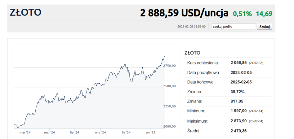 Początek roku przynosi kolejne rekordy cen złota. Notowania królewskiego kruszcu po trzech miesiącach korekty wróciły na szczyt pod koniec stycznia, a już w lutym osiągnęły cenę na poziomie 2 888,80 dolarów za uncję trojańską, jaką płacono 5 lutego.