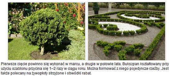 Bukszpan wieczniezielony (Buxus sempervirens) – zimozielony krzew liściasty, który świetnie znosi cięcie. Wśród roślin odpowiednich do strzyżenia wymieniany jest na pierwszym miejscu. Należy do krzewów wolno rosnących, jednak dobrze się zagęszcza, gdy dwukrotnie podczas sezonu wegetacyjnego jego pędy zostaną skrócone o 1/3 długości.